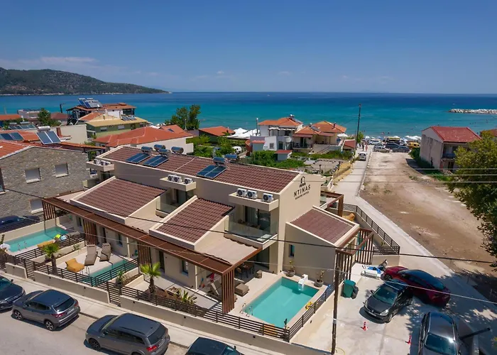 I villan Ntinas Seaside Suites finns bekvämligheter för självhushållning, som kylskåp, brödrost och köksredskap i ett minikök. Det här boendet ligger några meter bort från restaurangen Krambousa Restaurant, där gästerna kan njuta av olika måltider. Gästerna kan enkelt nå Megas Alexandros, Kavala flygplats, som ligger 40 km från den här villan med 2 badrum.